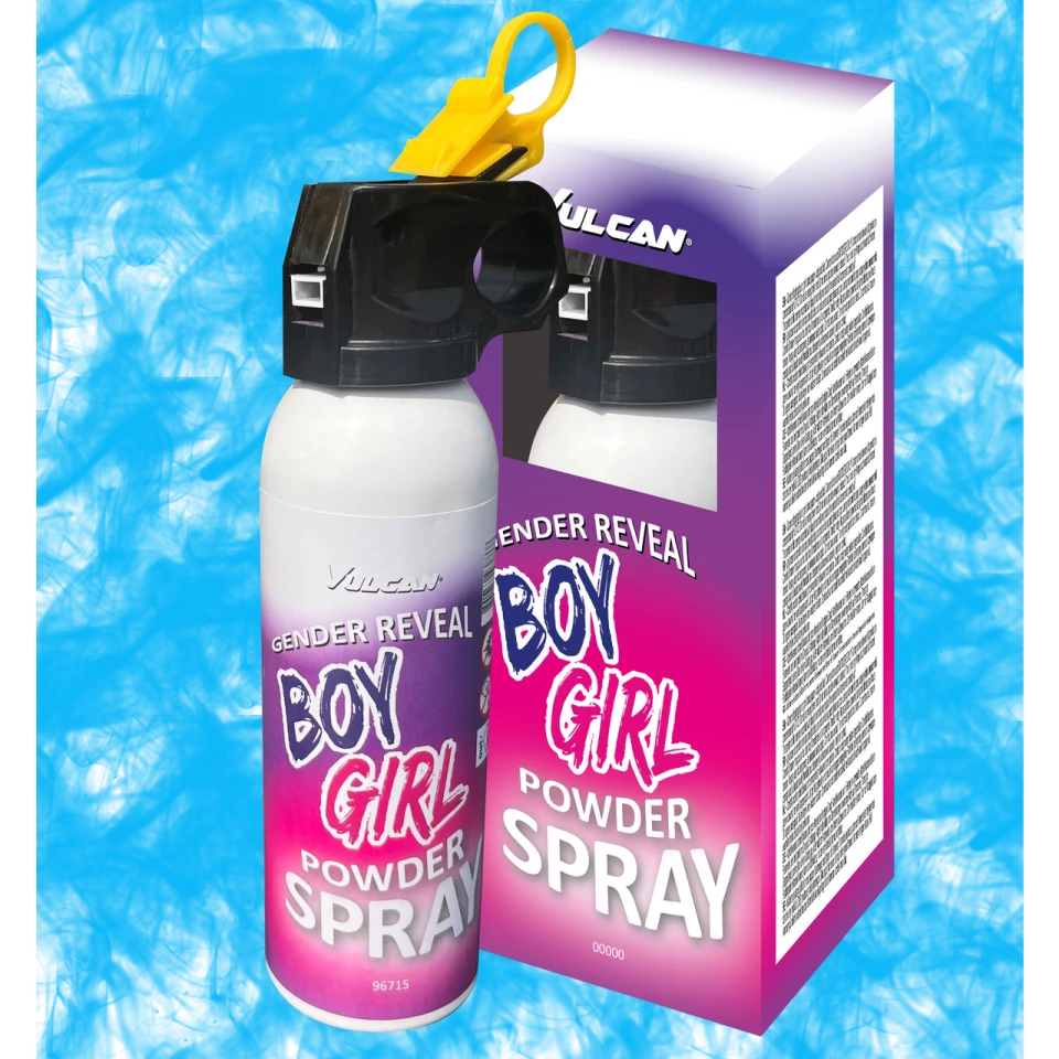 Een krachtige mini brandblusser zorgt voor een flinke wolk roze of blauwe poeder gedurende ca. 10 seconden. Op de onderkant van het doosje zit een roze of blauwe sticker om de kleur te weten, op de spuitbus zit geen kleurherkenning.