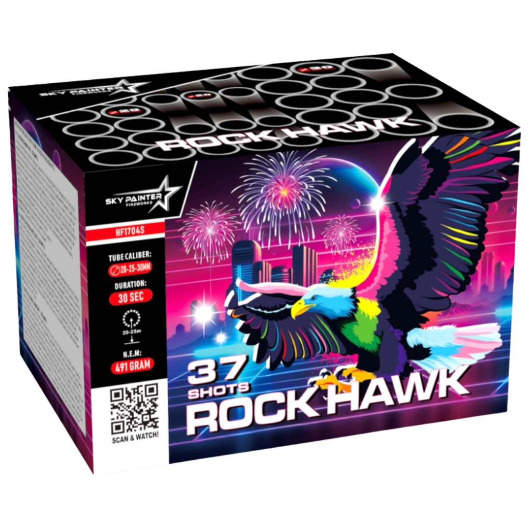 De Rock Hawk is een krachtpatser van Sky Painter: een multicaliber 500 gram cake die garant staat voor een spectaculaire show.