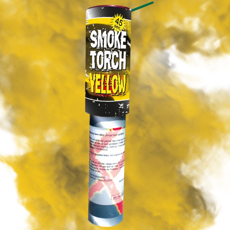 Na onsteking van het lont bovenaan de fakkel, geeft deze 45 à 50 seconden mooie, felle gele rook.
