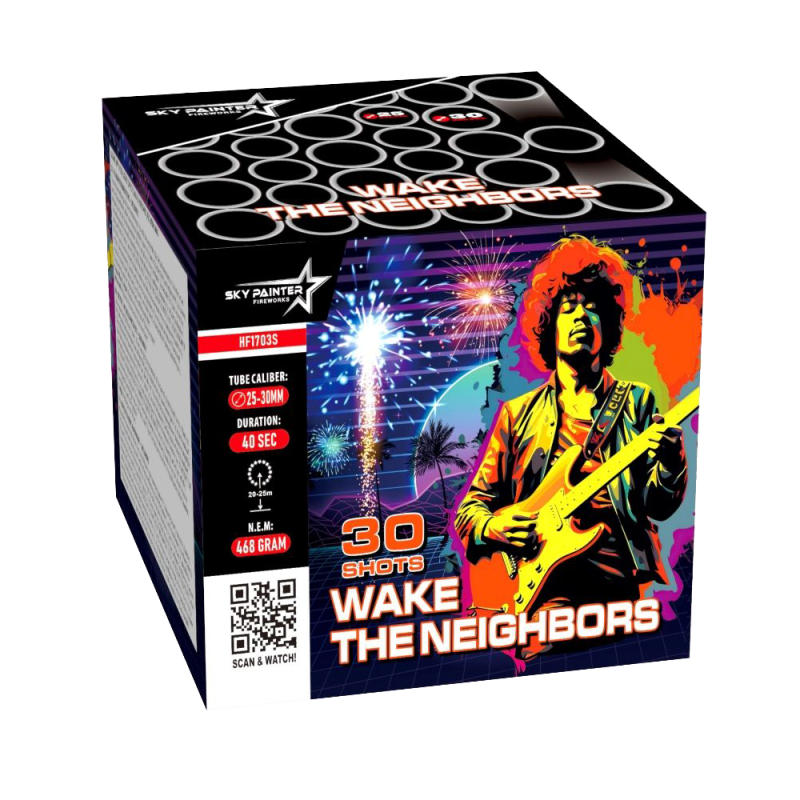 De Sky Painter Wake The Neighbors, een fantastische cake met 30 schoten van 25/30 mm